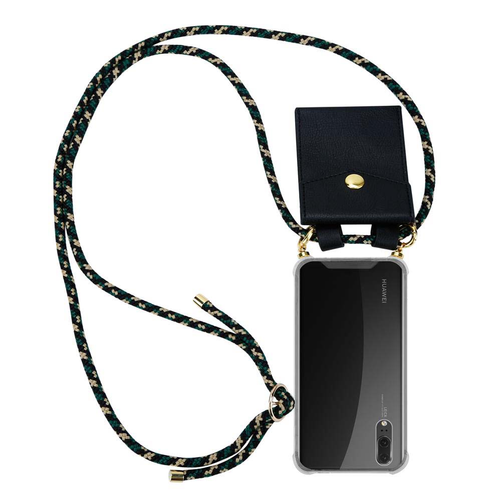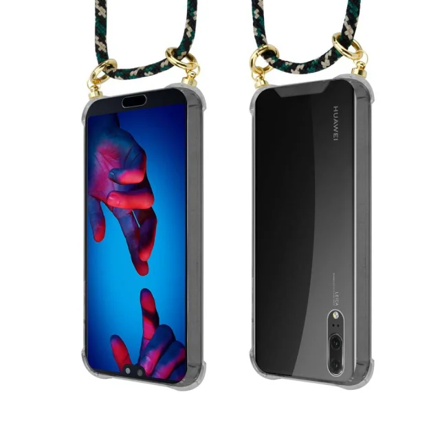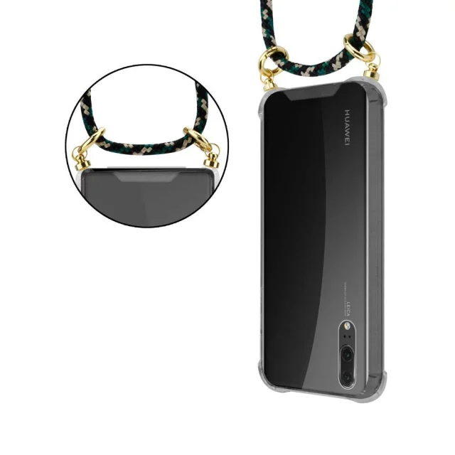 CADORABO združljivo s Huawei v kamuflaži - silikonski zaščitni pokrov z zlatimi obroči, pasom za vrvi in ​​snemljivim ohišjem