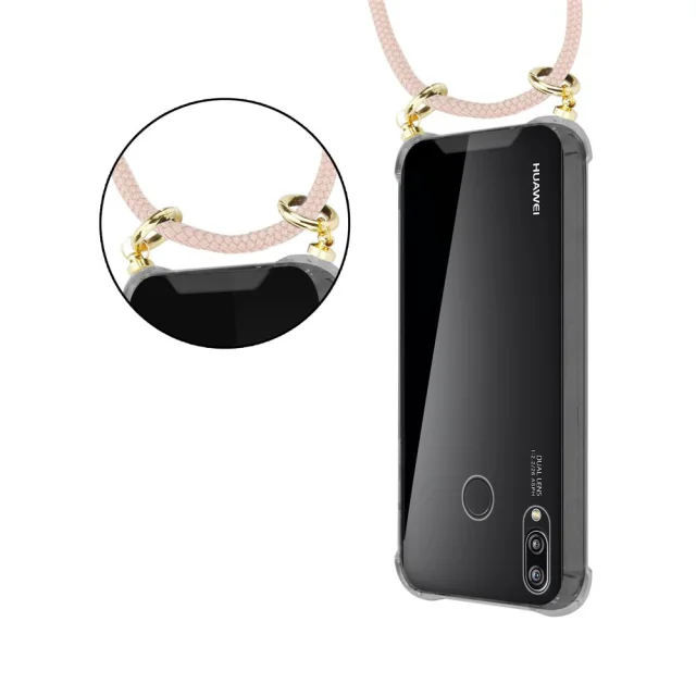 CADORABO združljivo s Huawei v Pearly Rosegold - Silikonski zaščitni pokrov z zlatimi obroči, jermen za vrvi in ​​snemljivimi ohišjem