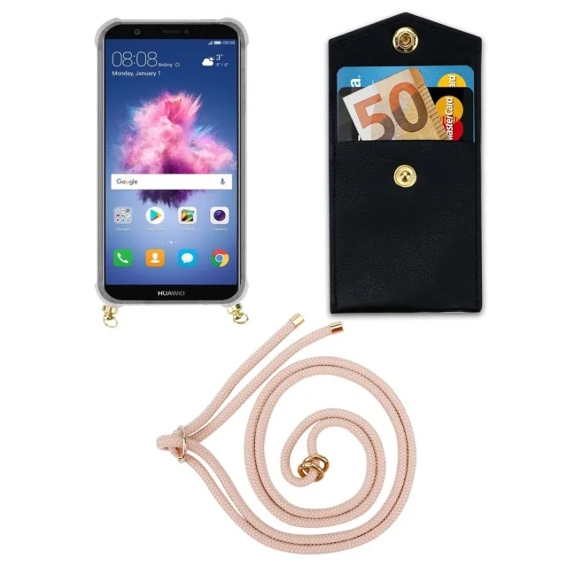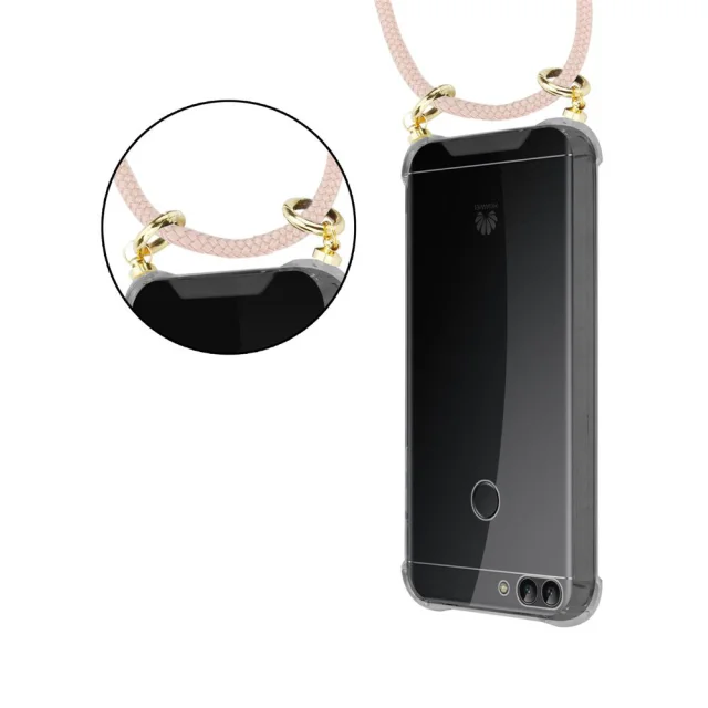CADORABO združljivo s Huawei v Pearly Rosegold - Silikonski zaščitni pokrov z zlatimi obroči, jermen za vrvi in ​​snemljivimi ohišjem