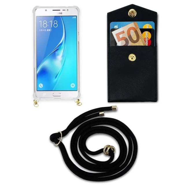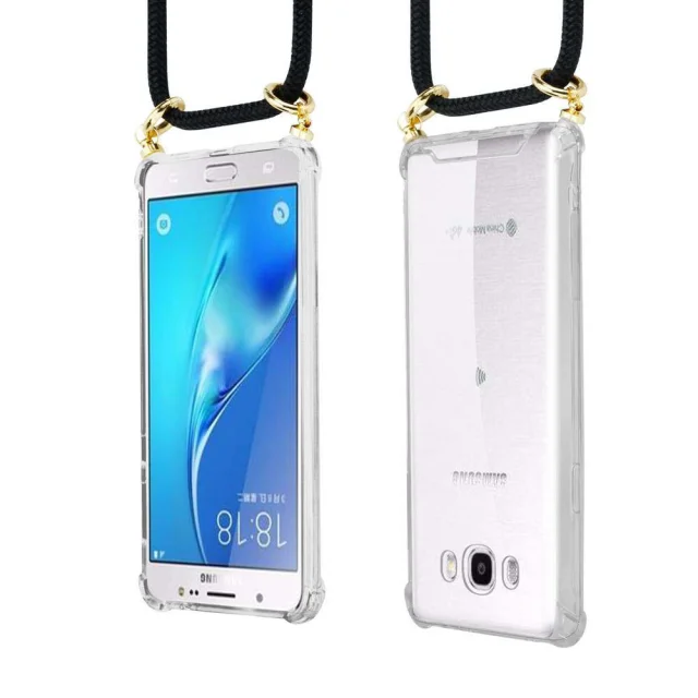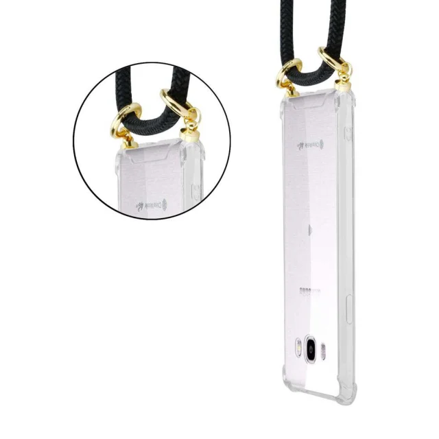 CADORABO Združljivo s Samsungom v črni barvi - silikonski zaščitni pokrov z zlatimi obroči, pasom za vrvi in ​​snemljivim ohišjem