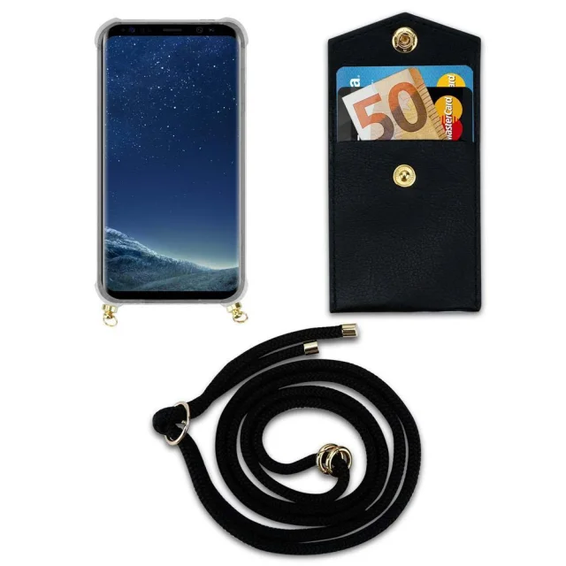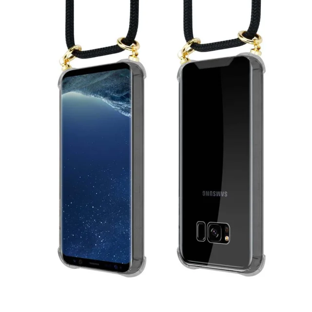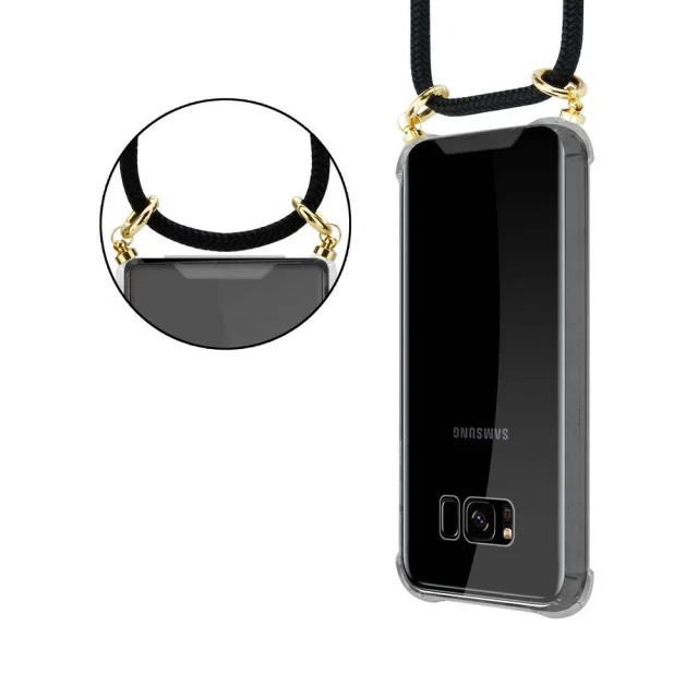 CADORABO Združljivo s Samsungom v črni barvi - silikonski zaščitni pokrov z zlatimi obroči, pasom za vrvi in ​​snemljivim ohišjem