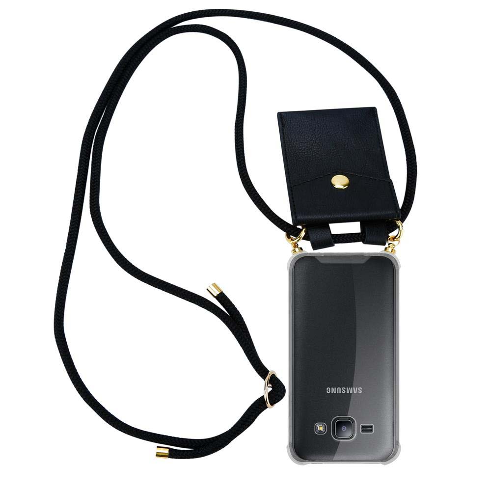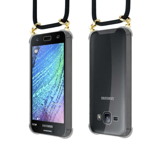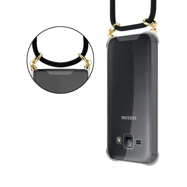 CADORABO Združljivo s Samsungom v črni barvi - silikonski zaščitni pokrov z zlatimi obroči, pasom za vrvi in ​​snemljivim ohišjem