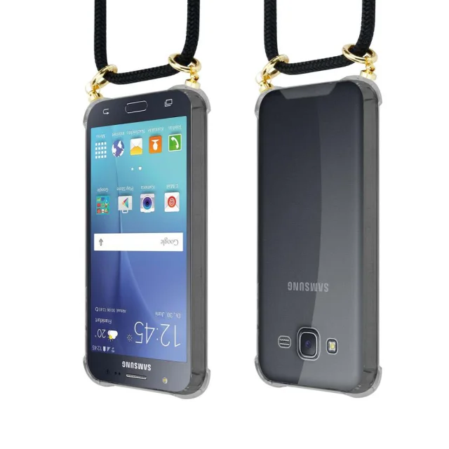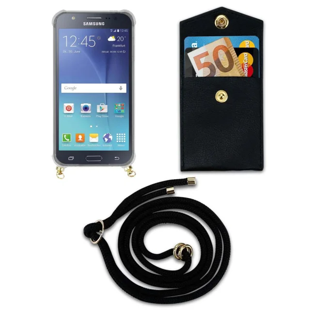 CADORABO Združljivo s Samsungom v črni barvi - silikonski zaščitni pokrov z zlatimi obroči, pasom za vrvi in ​​snemljivim ohišjem