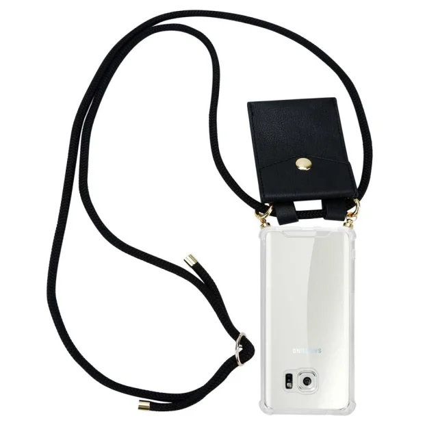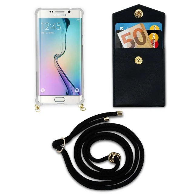 CADORABO Združljivo s Samsungom v črni barvi - silikonski zaščitni pokrov z zlatimi obroči, pasom za vrvi in ​​snemljivim ohišjem