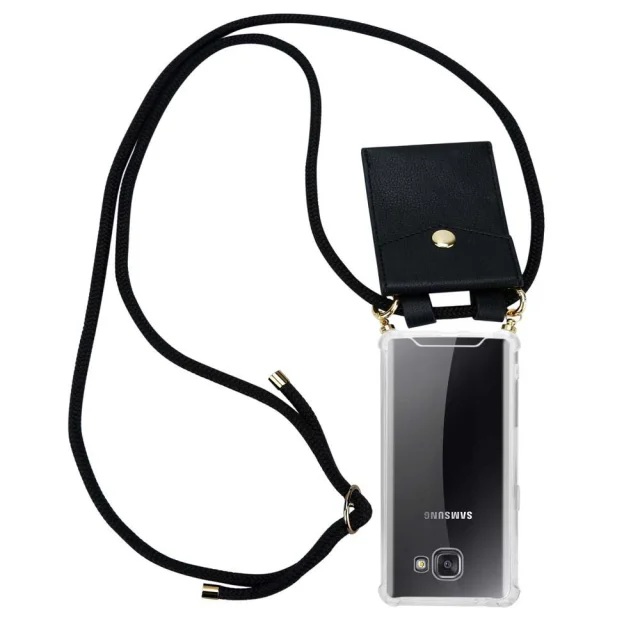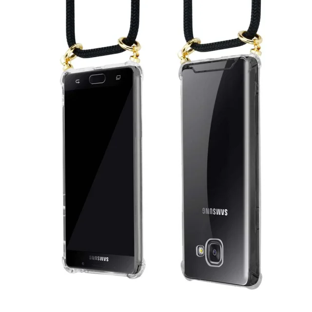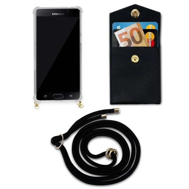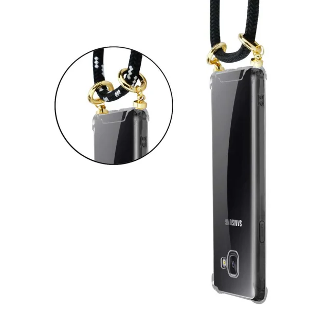 CADORABO Združljivo s Samsungom v črni barvi - silikonski zaščitni pokrov z zlatimi obroči, pasom za vrvi in ​​snemljivim ohišjem