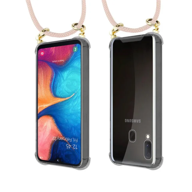 CADORABO Združljivo s Samsungom v Pearly Rosegold - Silikonski zaščitni pokrov z zlatimi obroči, jermen za vrvi in ​​snemljivimi ohišjem