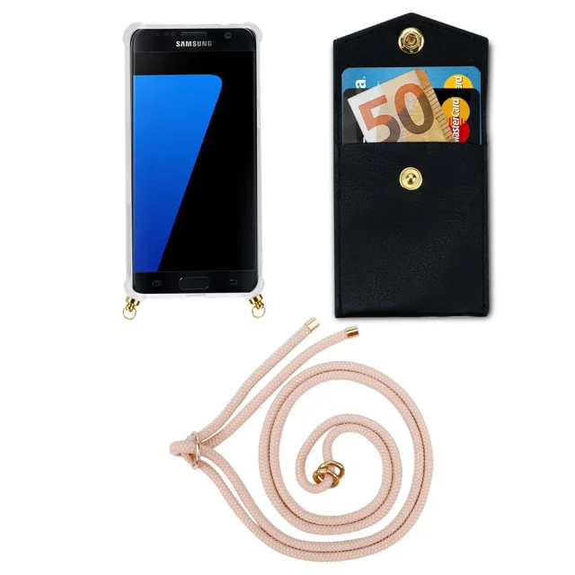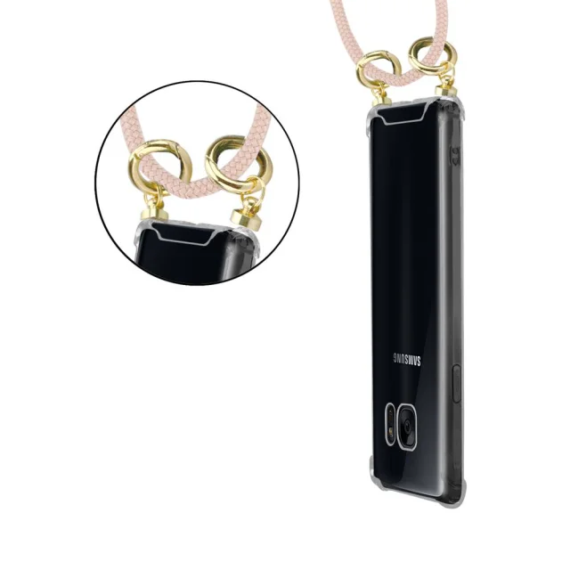 CADORABO Združljivo s Samsungom v Pearly Rosegold - Silikonski zaščitni pokrov z zlatimi obroči, jermen za vrvi in ​​snemljivimi ohišjem