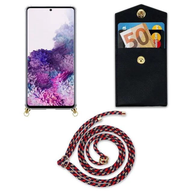CADORABO Združljivo s Samsungom v rdeči modro rumeni barvi - silikonski zaščitni pokrov z zlatimi obroči, pasom za vrvi in ​​snemljivim ohišjem