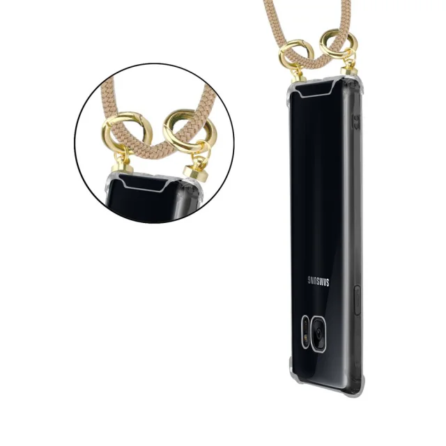 CADORABO Združljivo s Samsungom v sijoči rjavi barvi - silikonski zaščitni pokrov z zlatimi obroči, pasom za vrvi in ​​snemljivim ohišjem