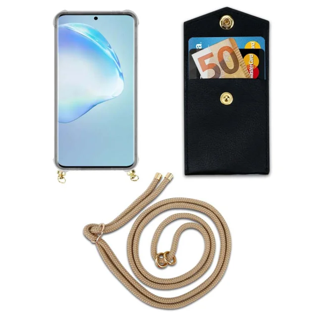 CADORABO Združljivo s Samsungom v sijoči rjavi barvi - silikonski zaščitni pokrov z zlatimi obroči, pasom za vrvi in ​​snemljivim ohišjem