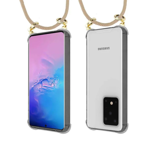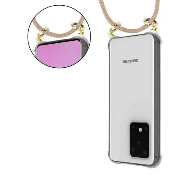 CADORABO Združljivo s Samsungom v sijoči rjavi barvi - silikonski zaščitni pokrov z zlatimi obroči, pasom za vrvi in ​​snemljivim ohišjem