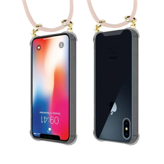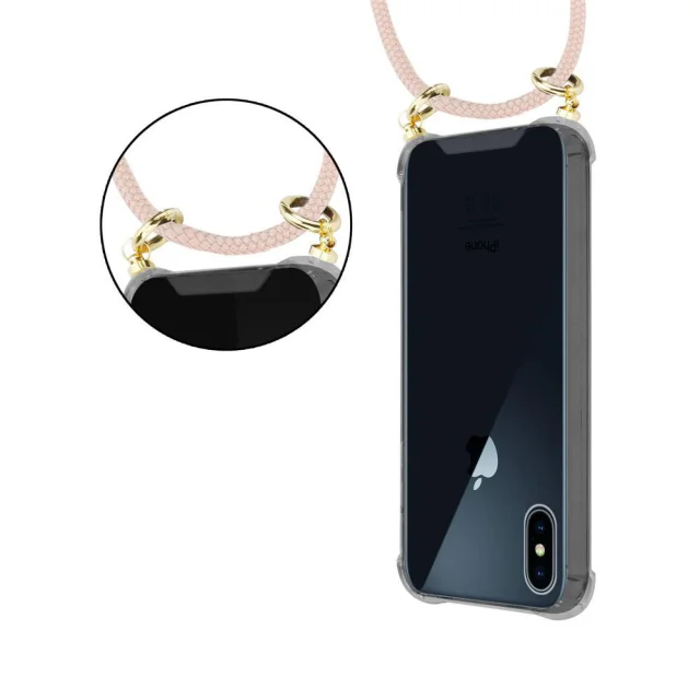CADORABO združljivo z Apple v Pearly Rosegold - silikonski zaščitni pokrov z zlatimi obroči, kabelskim pasom in snemljivim ohišjem