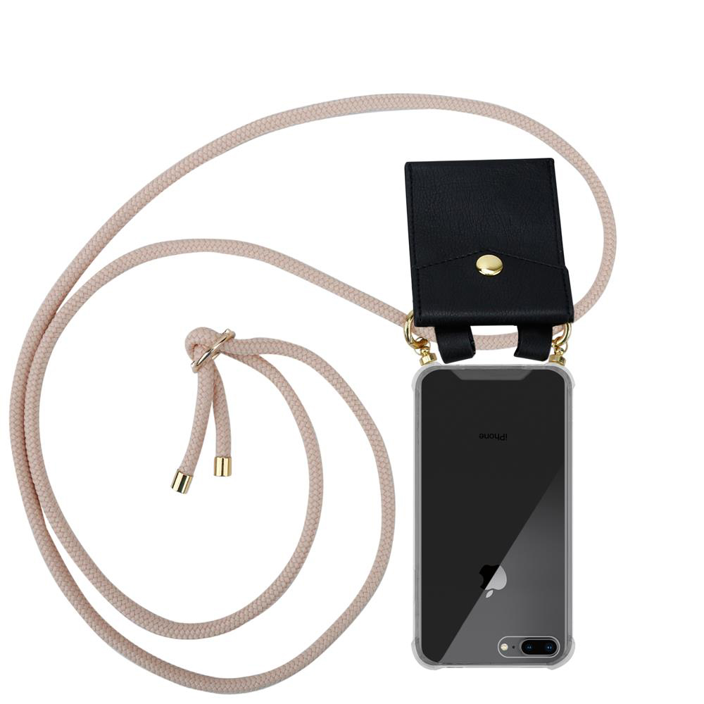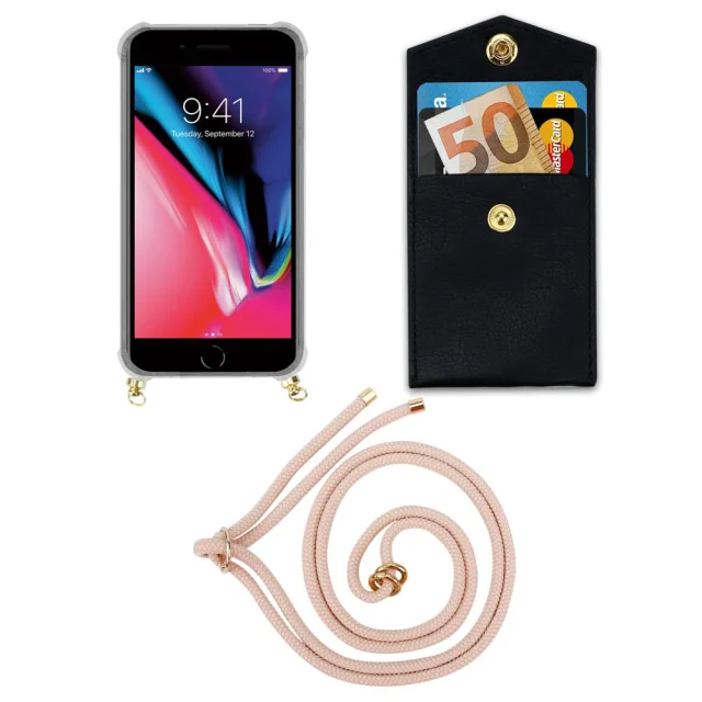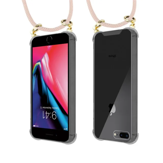 CADORABO združljivo z Apple v Pearly Rosegold - silikonski zaščitni pokrov z zlatimi obroči, kabelskim pasom in snemljivim ohišjem
