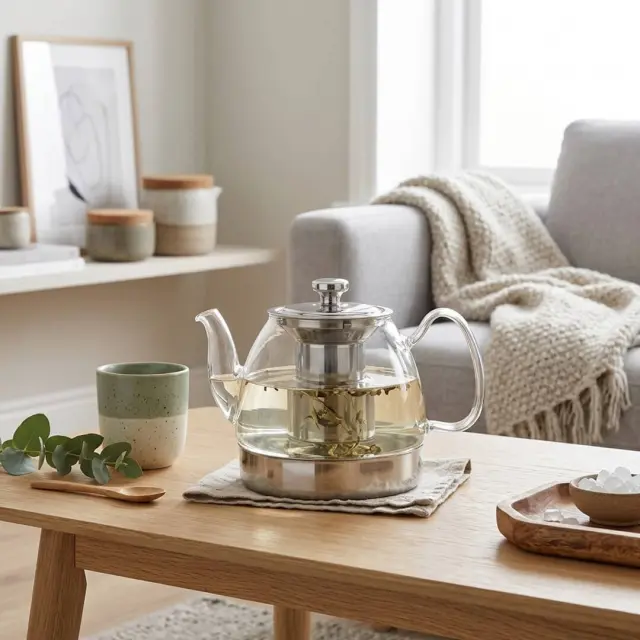Čajnik Bon Tea s prostornino 1,2 l je izdelan iz toplotno odpornega borosilikatnega stekla, s pokrovom in odstranljivim filtrom iz nerjavečega jekla. Čajnik ima merilni oznaki, ki označujeta minimalen (500 ml) in maksimalen (900 ml) nivo napolnjenosti. Za preprečitev grenkega čajnega priokusa priporočamo, da filter s čajnim pripravkom čez nekaj časa odstranite s pomočjo tankega ročaja. Čajnik Bon Tea je primeren za uporabo na vseh kuhalnih površinah, vključno z indukcijo. Odporen je do temperature 120° C. Priporočamo ročno pomivanje.