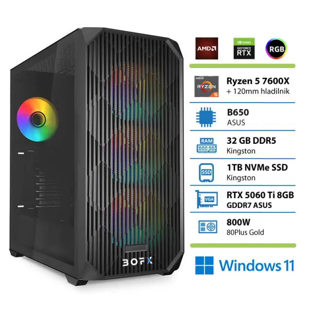 BOFX CALLISTO 2 Ryzen 5 7600X, 32 GB RAM, 1 TB SSD, RTX 5060 Ti gaming namizni računalnik