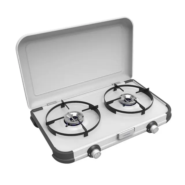 Camping Kitchen 2 je lahek in enostaven kuhalnik z dvema gorilnikoma, ki je kompatibilen z različnimi plinskimi kartušami. Kompaktna zasnova z vgrajenim ročajem za nošenje prihrani prostor, ko ga shranjujete v avtomobilu ali prikolici. Nosilci za posodo so narejeni iz emajliranega jekla in vsebujejo tudi zaščito proti vetru. Ko je obrok skuhan, lahko nosilce odstranite za hitro in enostavno čiščenje