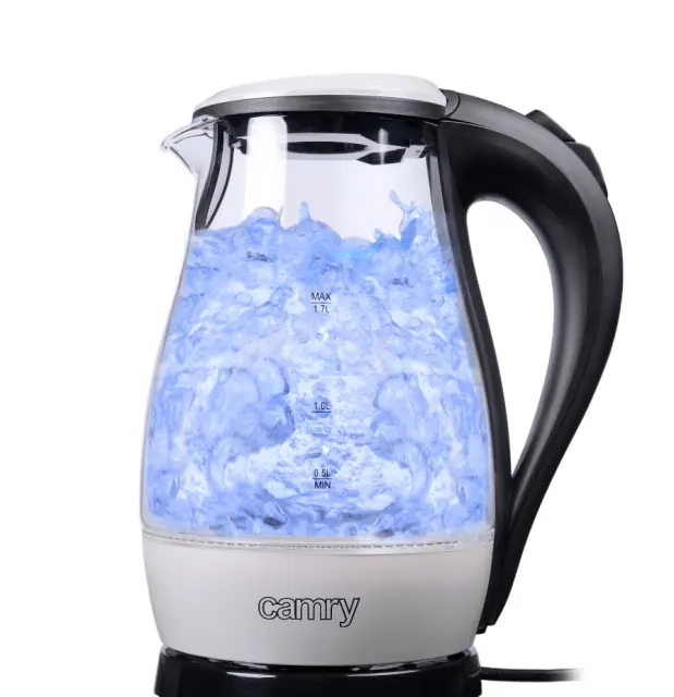 Velik družinski električni kotliček, ki z močjo 2200 W omogoča kuhanje vode za 6-7 oseb naenkrat.Kotliček je opremljen s svetlim indikatorjem ravni vode in samodejnim izklopom, zato se po zavretju vode izklopi. Zaščita pred suhim vrenjem preprečuje vklop praznega kotlička, kar prihrani energijo in poveča varnost uporabnika. Poleg tega bo filter za usedline poskrbel za ustrezno kakovost vode. Za udobje uporabnika je bil kotliček opremljen s 360-stopinjskim vrtljivim podstavkom in ravnim dnom. Bela barva in neagresivna zasnova. Omogoča kuhanje do 1,7 l vode. Opremljen je z grelnim elementom iz visokokakovostnega nerjavnega jekla in pilotno lučko, ki obvešča, da je voda pravkar zavrela.