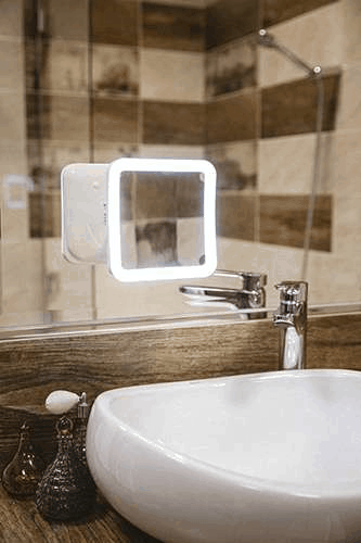 Praktično uporabo ogledala bodo cenili tako ženske kot moški. Vsekakor lahko pomaga pri vsakodnevnem britju ali ličenju. Pomembno za vse, ki ne želijo uničiti površine kopalnice, je ogledalo nameščeno brez vijakov, brez uporabe svedra ali drugih električnih naprav. Opremljen je z zaklepno prisesko, ki ohranja ogledalo na svojem mestu. Vse, kar morate storiti, je, da površino, na katero želite namestiti ogledalo, očistite pred prahu in masti. Sesalnik deluje na ploščice, steklo, keramiko, marmor in večino drugih ravnih površin. Trdno ga pritisnite ob površino, nežno zasukajte dno sesalca v smeri urnega kazalca, dokler ne zaslišite klika in zavrtite ogledalo v želeni položaj. Zahvaljujoč blokirnemu sistemu ostane na vsaki površini. Je popolna rešitev za vse tiste, ki nimajo prostora za veliko kopalniško ogledalo!