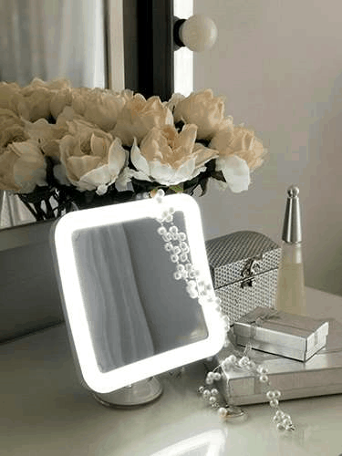 Naš izdelek je več kot le ogledalo. Zahvaljujoč 5-kratni povečavi in LED lučkam se lahko uporablja tako za profesionalno ličenje kot za nego. Ogledalo napajajo baterije (3 kosi AA), ki so nameščene v ohišju naprave. Stikalo na lahko dostopnem mestu lahko vklopi regulacijo svetlobe. S pritiskom enkrat - izberete najsvetlejšo luč, dvakrat - luč bo postala šibkejša, s tretjim pritiskom na stikalo pa luč popolnoma izklopite. Za snemanje ogledala tudi ni potrebno posebno orodje. Dovolj je, da nosilec sesalca povlečete, medtem ko podpira ogledalo, da ne pade. To je še posebej koristno, če želite to ogledalo vzeti s seboj na pot!