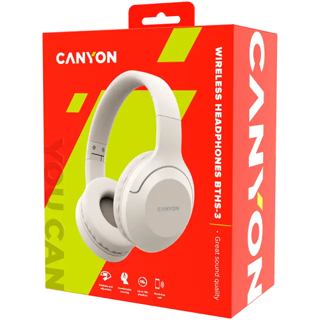 CANYON BTHS-3, Bluetooth slušalke s mikrofonom, BT V5.1 JL6956, baterija 300 mAh, priključek za polnjenje Type-C, bež barva.