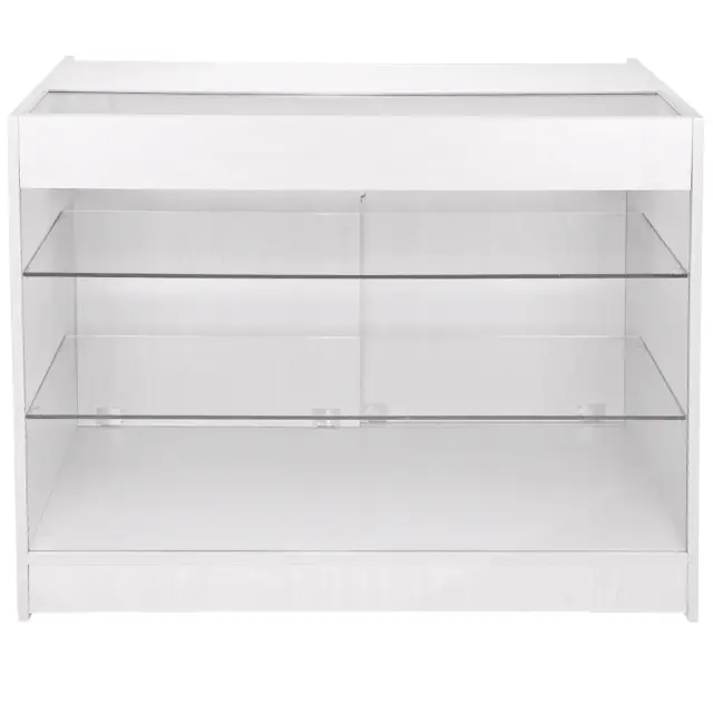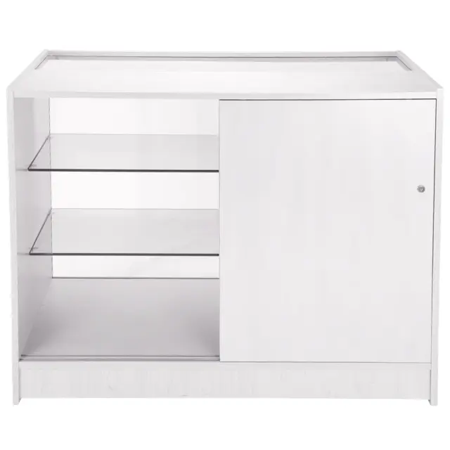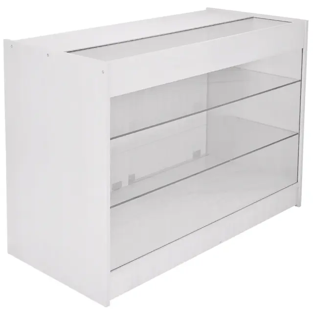 Trgovski pult K1200 je varna enota, ki jo je mogoče zakleniti, s stekleno zaslonsko ploščo po celotni dolžini na sprednji strani in z razgledno ploščo na vrhu, tako da lahko kupci vidijo in se morda celo slinijo nad vašimi izdelki, vendar brez povzročanja nereda. Na dveh močnih odstranljivih steklenih policah lahko razstavite široko paleto izdelkov. Dostop do razstavnega prostora je z zadnje strani prek drsnih vrat, ki jih je mogoče zakleniti.