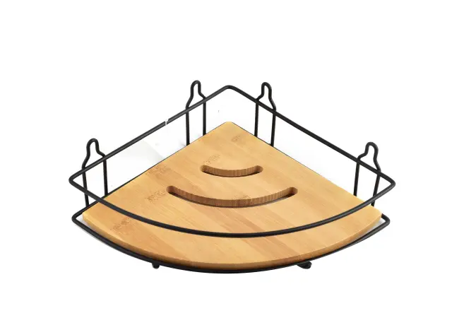 CARL BAMBOO Kopalniški regal h6,5x19x20ccm 1 nivo Trójkątna metalowa półka łazienkowa z serii CARL BAMBOO marki BATHLAB by MONDEX. Półka CARL BAMBOO to modne połączenie stali malowanej proszkowo oraz bambusa. Drewno bambusowe to idealny materiał do łazienki. Odporne jest na wilgoć, parę wodną oraz wodę, a jego odcień ociepli wnętrze każdej łazienki.Dołączone śruby montażowe. 1 praktyczna półka wykonana ze stali malowanej proszkowo oraz drewna bambusowego czarny mat h6.52x19x20cm