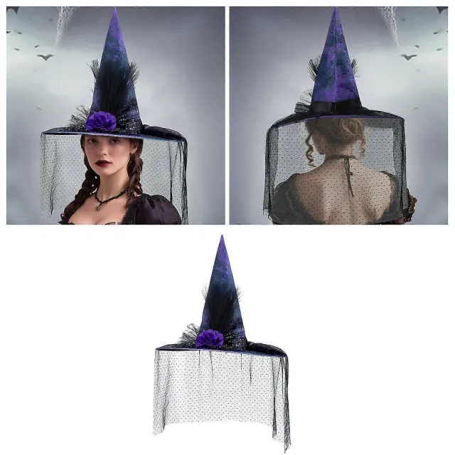 Čarovniški klobuki za noč čarovnic, tančica, klobuk s koničastim cvetjem, dodatek za cosplay, edinstven čarovniški klobuk, dodatki za cosplay
