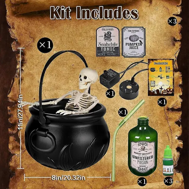 Čarovniški kotel s plavajočim difuzorjem steklenic za napoj za zabavo za noč čarovnic, počitniški dekor v hiši s straši