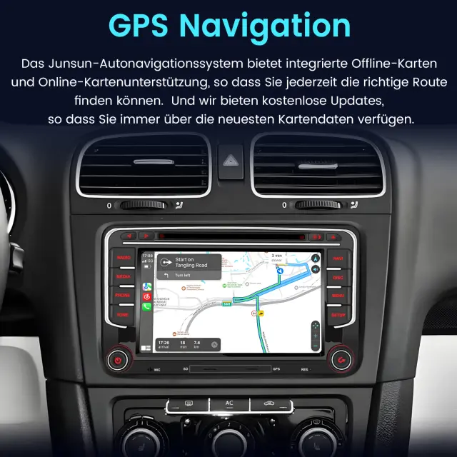 GPS Navigation 4G und WiFi: Sie können zwischen Offline- und Online-Navigation wählen! Mit vorinstallierten Offline-Karten können Sie nach dem Anschließen der GPS-Antenne in unserem Paket Koordinaten/Postleitzahlen/Adressen/POIs zur Routenplanung verwenden. Sie können Online-Navigations-Apps auch über WLAN und 4G-Netzwerke herunterladen. Außerdem können Sie andere Apps/Musik und Videos über WLAN und 4G-Netzwerke herunterladen!