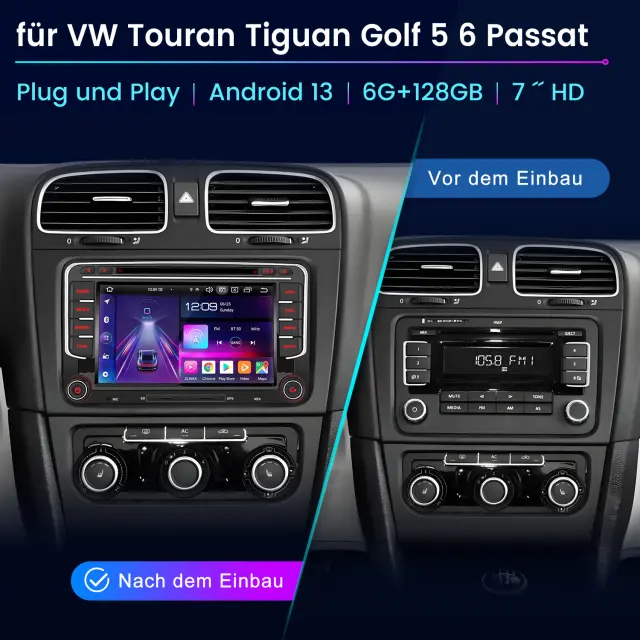 9 Zoll Android 13 Autoradio für VW: Das Radio für Volkswagen verfügt über das neueste Android 13-Betriebssystem, integrierte 【4 GB RAM + 64 GB ROM】, sodass Sie schnellere, flüssigere und intelligentere Navigationsanwendungen erleben können. Für Amarok (2010-2015), Für Käfer (2011-2015), Für Bora Jetta (2005-2015), Für Caddy (2004-2015), Für EOS (2006-2015), Für Golf MK5 /V5/A5 /1K(Variante/GTI/Kombi) (2003-2009),Einzelheiten zum anwendbaren Modell und zum Herstellungsjahr finden Sie im Detailmodul unten.