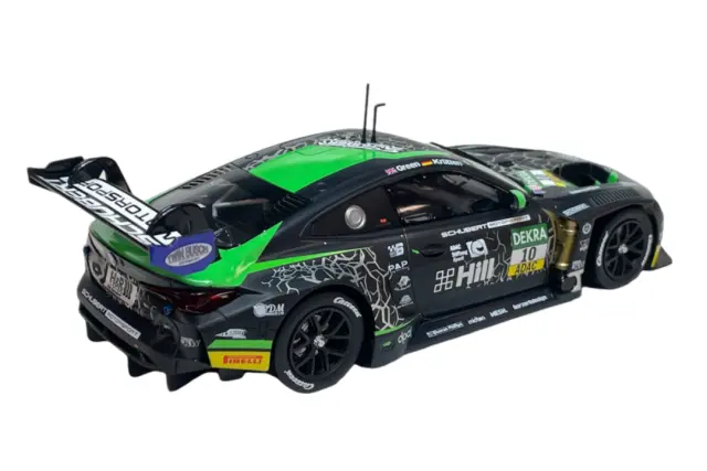 Ta miniaturni model je natančna reprodukcija vozila BMW M4 GT3 s številko 10, ki se uporablja na dirkah prvenstva GT Masters 2022.. Ta miniaturni avtomobilček otroku ponuja vznemirljivo dirkaško pustolovščino.. Vse je skrbno reproducirano: žarometi, zavorne luči, barva, številka 10 na pokrovu motorja in vratih itd.. Model je idealne velikosti, da ga otrok zlahka prenaša..