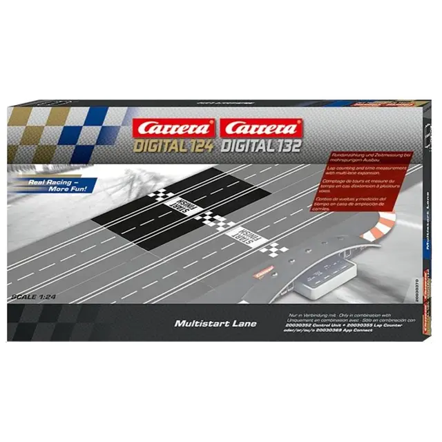 Podaljšek proge v merilu 1/24 zagotavlja očarljive večkratne odhode. Združljivost z vezji Carrera DIGITAL 132 in 124 zagotavlja popolno integracijo. Natančen števec krogov dirkanju doda dodatno dimenzijo. Časovna tehnologija omogoča natančno merjenje vsake izvedbe..