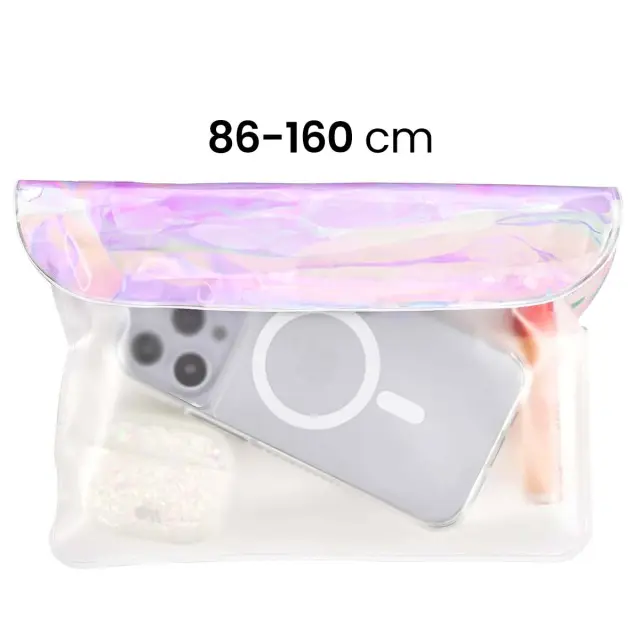 Vodotesna torbica za pas za popolno zaščito pred vodo, prahom in umazanijo. Prelivajoča se holografska zasnova doda edinstven slog vašim oblačilom.. Nastavljiv pas od 86 do 160 cm za vse oblike telesa in načine nošenja. Trojni sistem tesnjenja zagotavlja popolno varnost vaših osebnih predmetov..