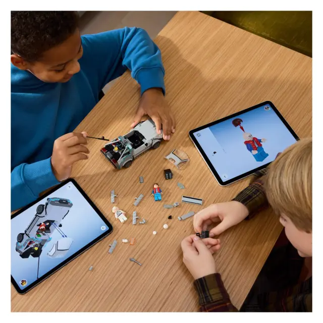 Otroke čaka sestavljanje modela avtomobila LEGO Hitrostni prvaki Časovni stroj iz filma Vrnitev v prihodnost, s katerim lahko razstavljajo in poustvarjajo akcijo iz ikonične filmske franšize.