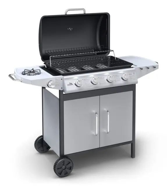Plinski žar s štirimi gorilniki in stranskim kuhalnikom za dolge poletne dni, odličen za druženje s prijatelji in družino. Na njem boste z lahkoto spekli razne dobrote in s svojimi kulinaričnimi sposobnostmi navdušili svoje goste.