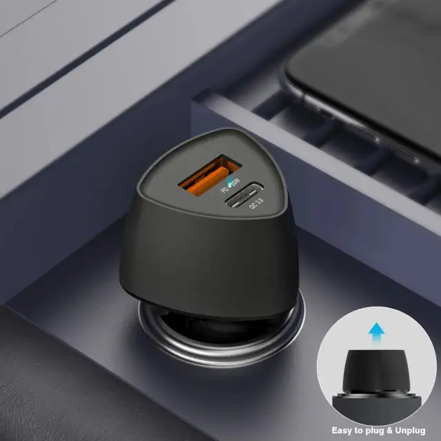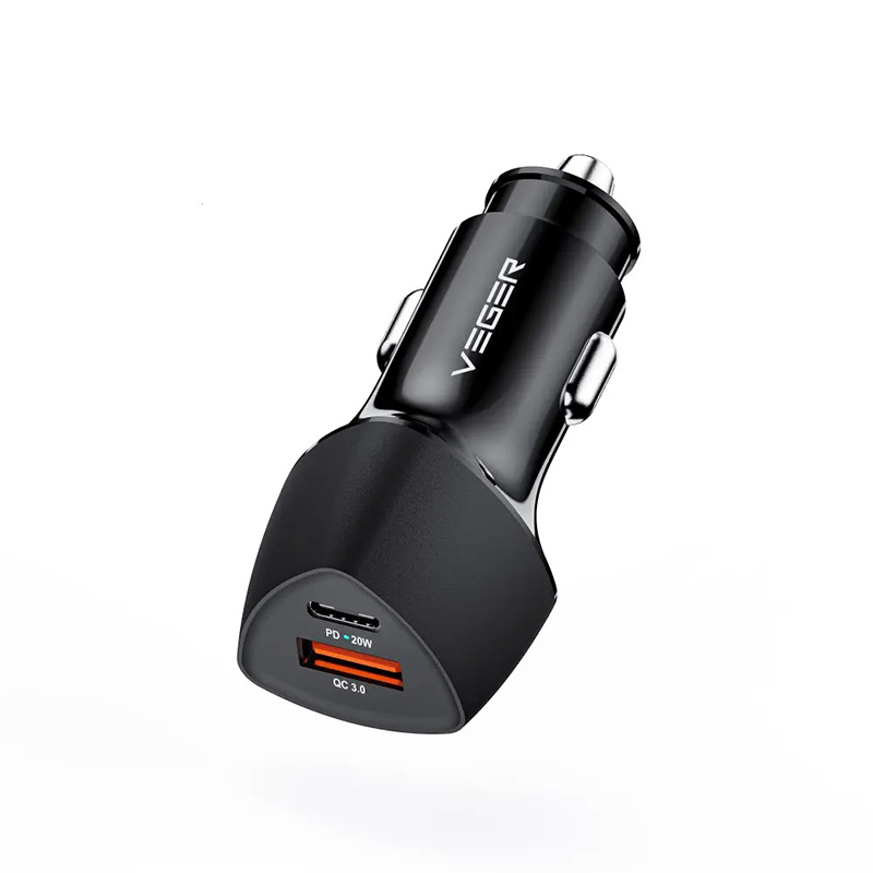 VEGER avtopolnilec CC50 USB+USB-C PD, QC3.0 38W