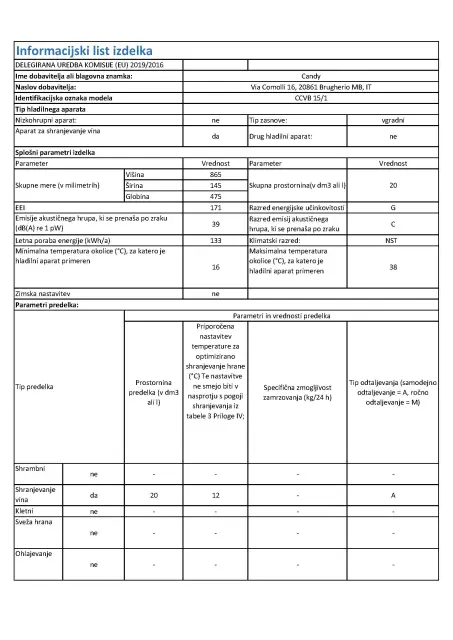 CANDY, CCVB15/1, črna, vgradna vinska vitrina