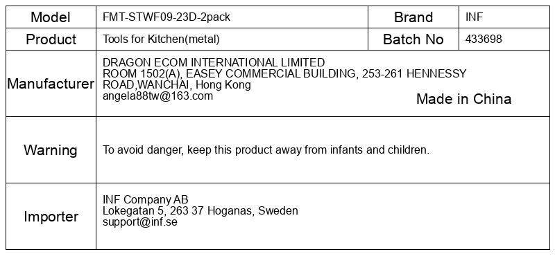 Da bi se izognili nevarnosti, hranite ta izdelek izven dosega dojenčkov in otrok.