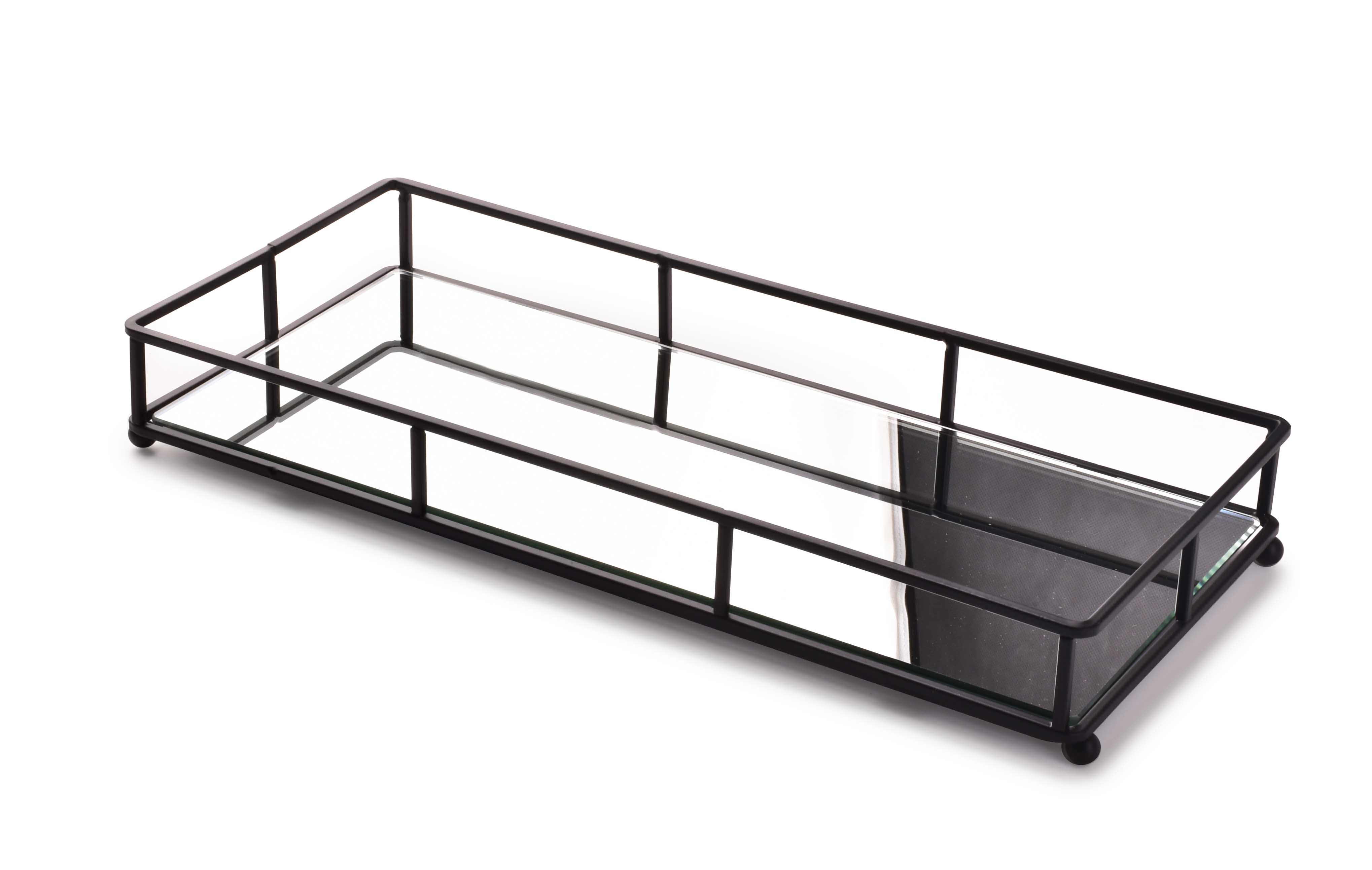CEDRIC Stojalo za pladenj 36X16xh5cm črno z ogledalom Pravokotni okrasni pladenj Cedric podjetja Mondex je vrhunski izdelek, oblikovan za tiste, ki cenijo estetsko dovršenost in funkcionalnost. Izdelan iz kovine in ogledala, pladenj prinaša eleganco in stil v vsak prostor. Njegova edinstvena oblika in skladne linije zagotavljajo, da bo postavljen kjerkoli opazen, bodisi v dnevni sobi bodisi v jedilnici. Pladenj ne služi le kot funkcionalen predmet, temveč tudi kot samostojna dekoracija, ki lahko popestri vsak kotiček vašega doma.Kreativna uporaba pladnja Cedric je široka. Lahko ga postavite na mizo z zanimivo kompozicijo dekorativnih predmetov, sveč ali cvetja, kar bo dodalo poseben pečat vašemu bivanju. V kopalnici pa služi kot elegantno stojalo za razstavo čudovitih dozirnikov za milo ali parfum, kar bo prostoru dalo pridih razkošja. Njegova praktičnost in estetska vrednost sta idealna kombinacija za vsak dom.S težo 806 g in dimenzijami 36 x 16 x 5 cm je pladenj ravno pravšnje velikosti za različne namene. V pakiranju iz bele kartonaste embalaže, ki meri 37 x 17 x 5,5 cm, zagotavlja zaščito in elegantno predstavitev izdelka. Pravokotni okrasni pladenj Cedric je popolna izbira za vse, ki želijo obogatiti svoj dom z edinstvenimi dekorativnimi elementi, hkrati pa ohraniti funkcionalnost in enostavno uporabo.