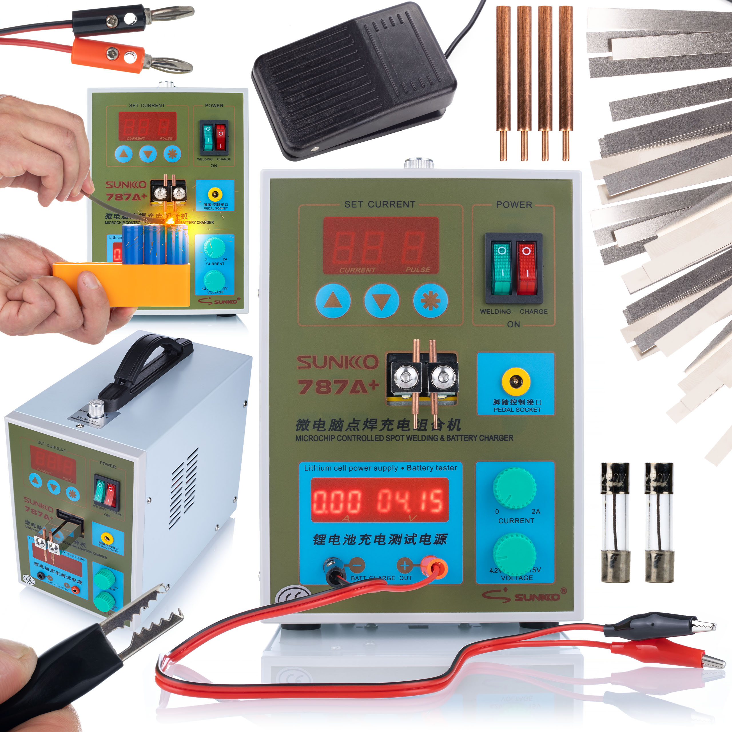 Rosfix Zgrnjevalnik Točk Sunkko 787A+ – 1,5 kW, 50–800 A, LED, Polnilnik 4,2–15 V | Za Litijeve Baterije