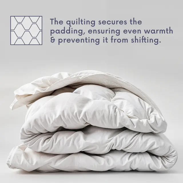 Prevleka The White Stone s polnjenjem 250 g/m² iz 100 % hipoalergenske šuplje vlaknine je popolnoma primerna za uporabo skozi vse leto: zagotavlja topel in suh spanec v vseh sezonah, zahvaljujoč mehkim vlaknom, ki delujejo kot izolator, in zračni mikrofibri, ki preprečuje nabiranje vlage. Steppanje je zasnovano tako, da polnilo ostane na svojem mestu, enakomerno porazdeli težo in toploto.