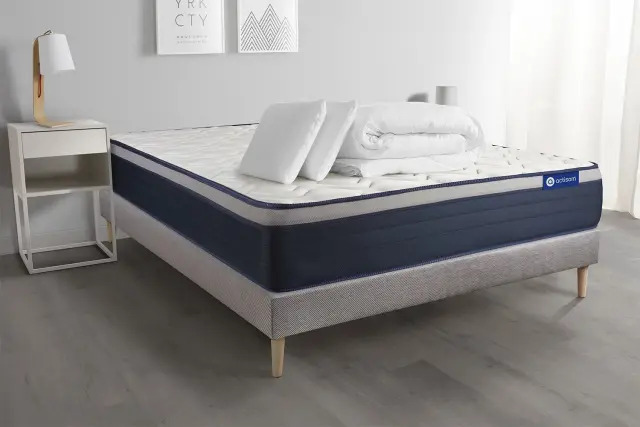 Celoten paket za posteljo - Vzmetnica 140x200 cm + Vzmetni boksi z letvami (komplet) + 2 vzglavnika + Prevleka - Actilatex Max