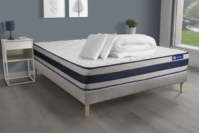Celoten paket za posteljo - Vzmetnica 160x200 cm + Vzmetni okvir z letvami (komplet) + 2 vzglavnika + Prevleka - Actiflex Ergo