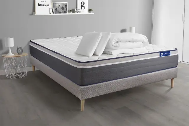 Celoten paket za posteljo - Vzmetnica 200x200 cm + Vzmetni okvir z letvami (komplet) + 2 vzglavnika + Prevleka - ActiMemo Plus