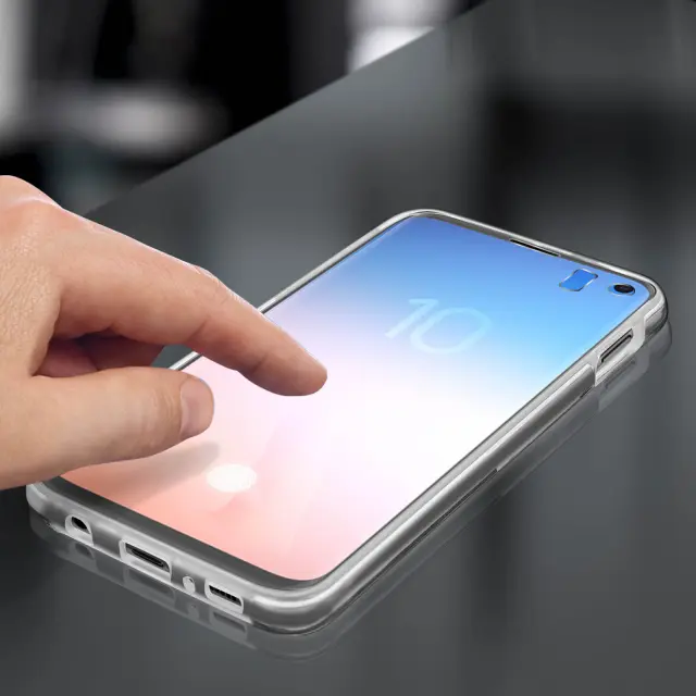 Popolna zaščita, zasnovana posebej za Samsung Galaxy S10e. Sprednja platnica iz silikonskega gela in zadnja stran iz polikarbonata. Učinkovito ščiti pred vsakodnevnimi udarci in praskami. Barvna reprodukcija in tekočnost dotika sta odlično ohranjena.