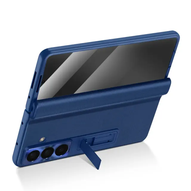 Celotno ohišje za Samsung Galaxy Z Fold 7 s kaljenim steklom in stojalom, Modra