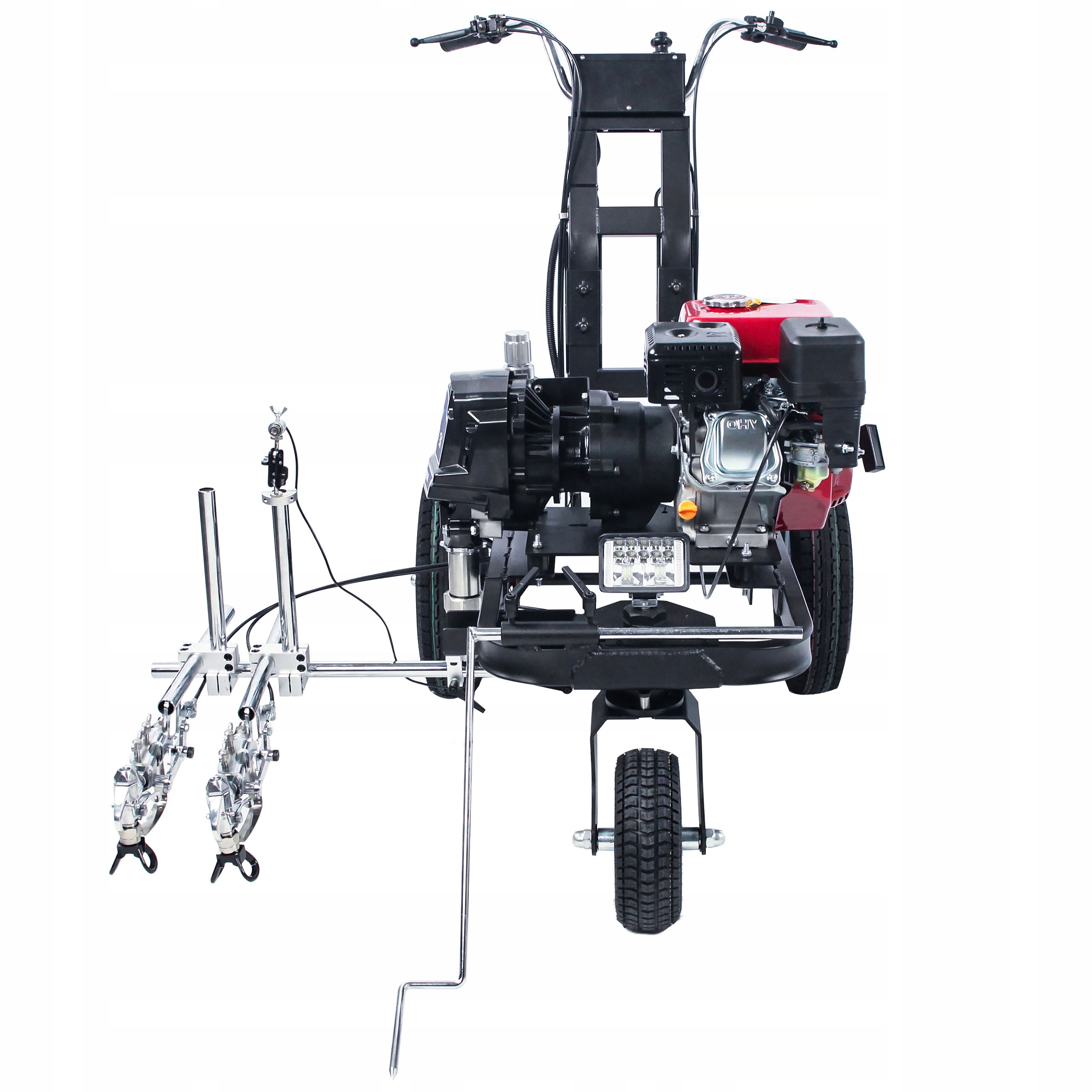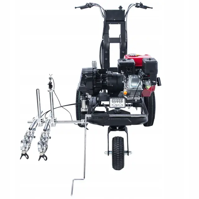 Cestni barvni razpršilnik omogoča pritrditev barvne pištole tako na desni kot na levi strani, kar omogoča prilagoditev individualnim potrebam uporabnika. V kompletu so vsi potrebni elementi za montažo, ki omogočajo natančno nastavitev pištole, kar zagotavlja udobje pri delu in natančnost pri barvanju črt.