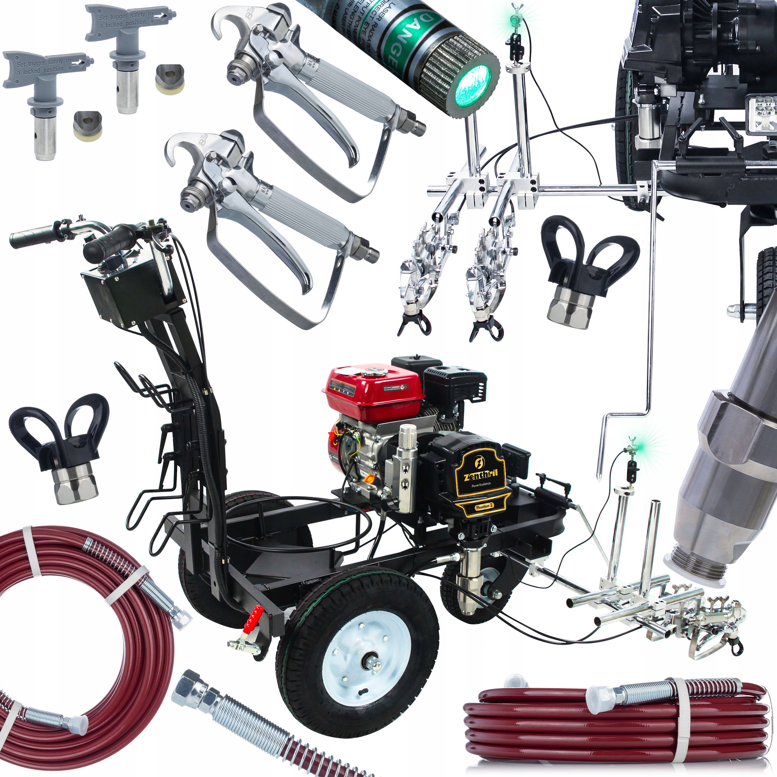 ✅ Profesionalni, zmogljiv enopistolni barvni razpršilnik, namenjen intenzivnemu horizontalnemu označevanju v cestnih in industrijskih aplikacijah. Naprava deluje pri maksimalnem tlaku 23 MPa in doseže zmogljivost do 4 l/min.