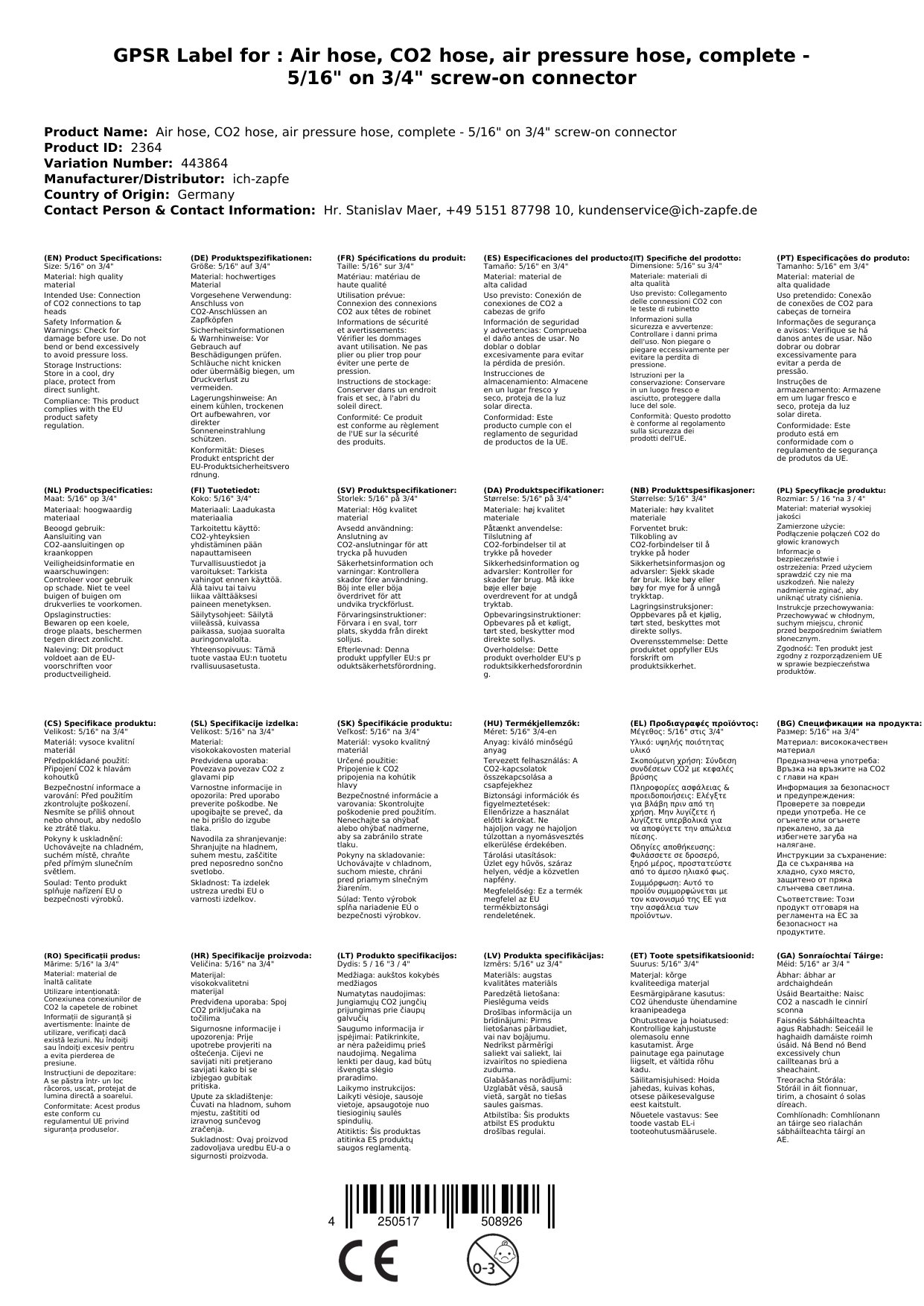 Njena robustna zasnova zagotavlja dolgo trajnost in zanesljivost, kar jo naredi za idealno naložbo za vsak gastronomski obrat ali domačega pivovarja. Fleksibilnost cevi omogoča enostavno rokovanje in namestitev, tako da lahko svoje sisteme hitro in učinkovito priključite brez dodatnega orodja ali strokovnega znanja.