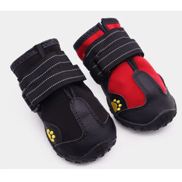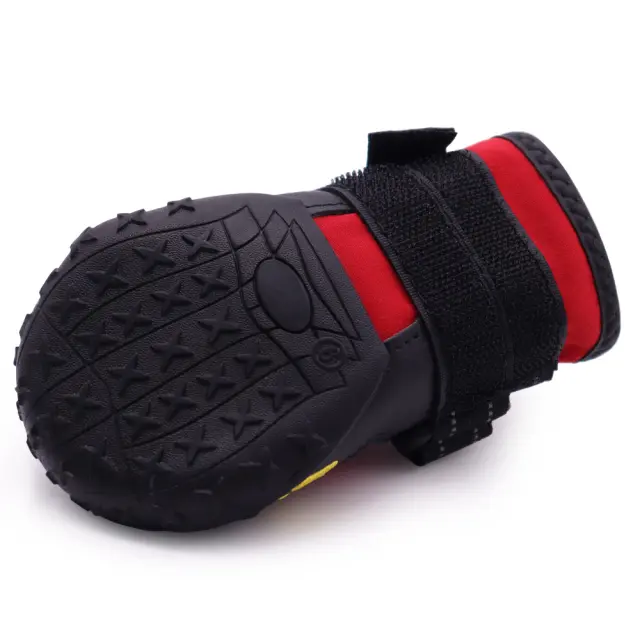 Trpežen in varen oprijem: ti čevlji z nedrsečim podplatom zagotavljajo odličen oprijem na različnih površinah, izboljšajo stabilnost vašega psa in preprečujejo, da bi zdrsnil in padel. Varen trak na ježka zagotavlja tesno prileganje in preprečuje enostavno sezuvanje čevljev med hojo ali igro.